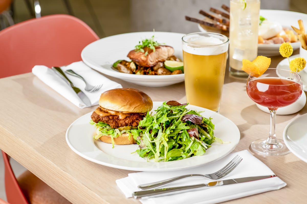served with your choice of mixed greens or house frites / substitute cup soup +3 / substitute gluten-free bread or bun +1-